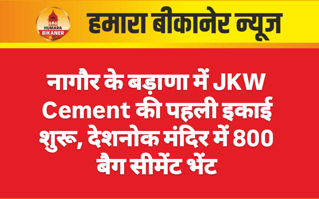 नागौर/बीकानेर। राजस्थान के नागौर जिले के बदआना गांव में JKW Cement ने उत्तर भारत की अपनी पहली उत्पादन इकाई का भव्य शुभारंभ किया है। व्यापारिक शुरुआत के साथ ही कंपनी ने अपनी सामाजिक जिम्मेदारी और श्रद्धा भाव का परिचय देते हुए प्रदेश के प्रमुख देवस्थानों पर सीमेंट दान करने का निर्णय लिया है। इसी कड़ी में कंपनी द्वारा देशनोक स्थित विश्व प्रसिद्ध मां करणी मंदिर में 800 बैग सीमेंट भेंट किए गए।