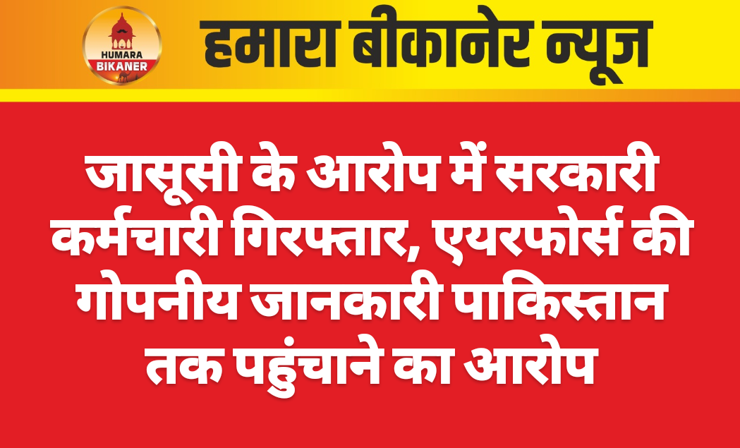 सरकारी कर्मचारी के जासूसी के आरोपों में गिरफ्तार किया गया है। राजस्थान की इंटेलीजेंस टीम ने जासूसी के आरोप में सरकारी कर्मचारी को असम के चबुआ एयरफोर्स स्टेशन से गिरफ्तार किया है। आरोपी भारतीय वायुसेना से जुड़ी संवेदनशील जानकारियां पाकिस्तान के हैंडलर्स तक पहुंचा रहा था। उसने लड़ाकू विमानों की लोकेशन, मिसाइल सिस्टम और अधिकारियों-कर्मचारियों से संबंधित गोपनीय जानकारी भी साझा की थी।