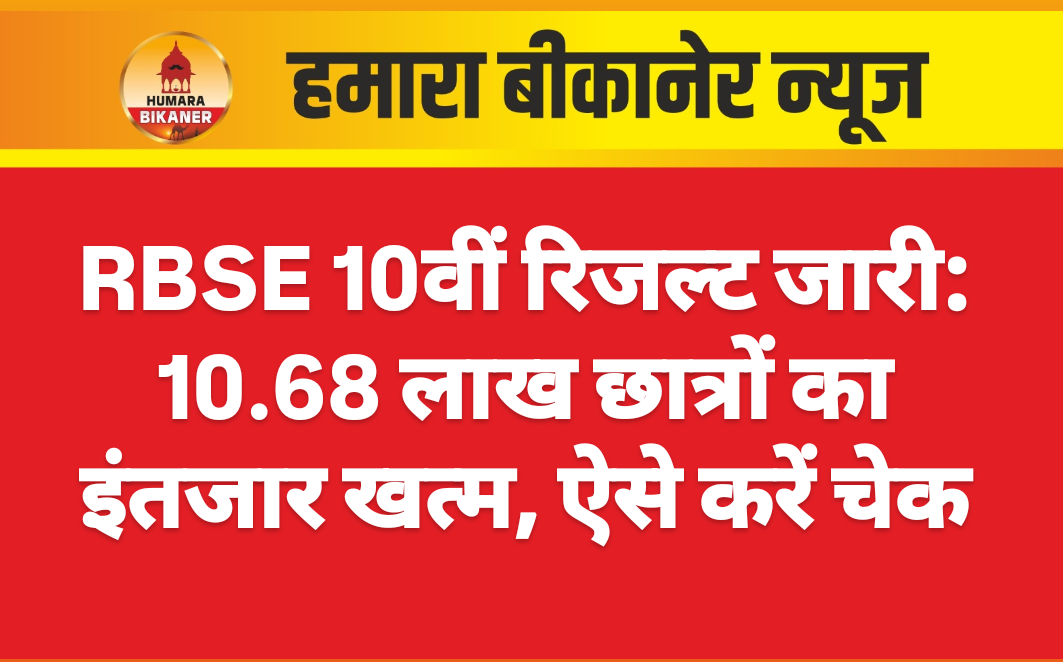 राजस्थान माध्यमिक शिक्षा बोर्ड (RBSE) की 10वीं कक्षा का परिणाम जारी हो गया है। जयपुर में एक लाख से अधिक विद्यार्थियों को इंताजर भी रिजल्ट जारी होने के साथ ही खत्म हो गया है। वर्ष 2026 में राजस्थान बोर्ड (RBSE) की 10वीं कक्षा की परीक्षा के लिए पूरे राज्य में कुल 10,68,078 छात्र पंजीकृत थे। ये परीक्षाएं 12 फरवरी से 28 फरवरी 2026 तक आयोजित की गई थीं।