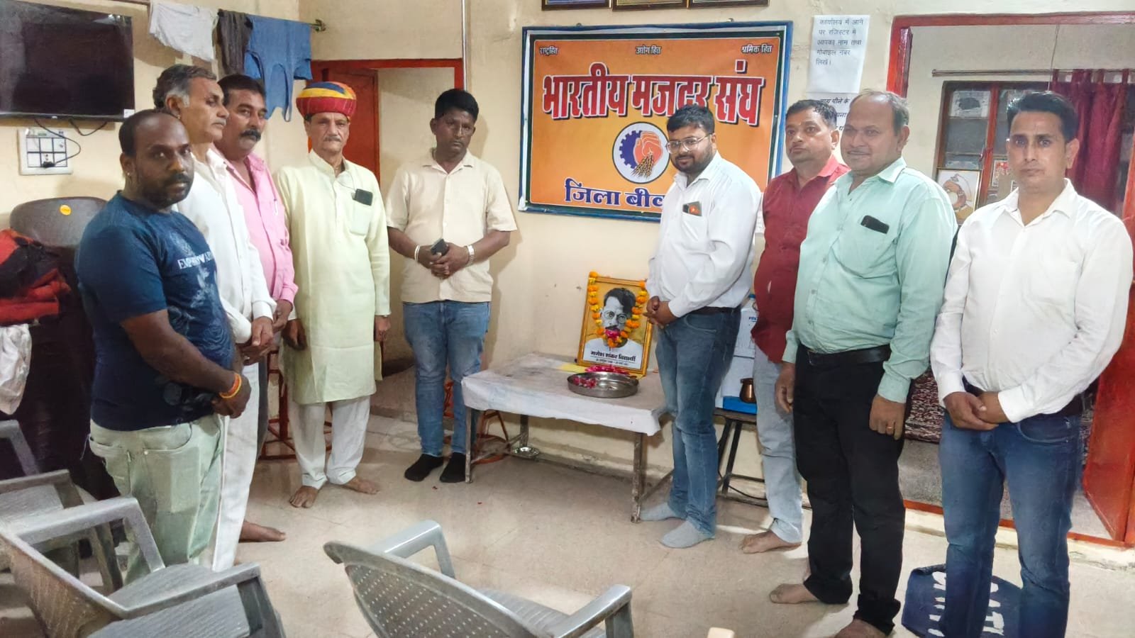 महान स्वतंत्रता सेनानी, निर्भीक पत्रकार एवं समाजसेवी,गणेश शंकर विद्यार्थी की पुण्यतिथि के अवसर पर भारतीय मजदूर संघ, बीकानेर द्वारा आयोजित श्रद्धांजलि एवं विचार गोष्ठी सफलतापूर्वक सम्पन्न हुई।कार्यक्रम में उपस्थित सभी पदाधिकारियों एवं कार्यकर्ताओं ने उनके चित्र पर पुष्प अर्पित कर उन्हें भावभीनी श्रद्धांजलि दी तथा उनके आदर्शों, त्याग एवं राष्ट्रभक्ति पर अपने विचार व्यक्त किए।