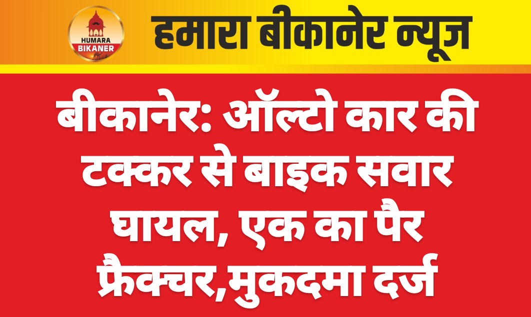 बीकानेर। ऑल्टो कार के चालक द्वारा लापरवाही से गाड़ी चलाते हुए बाइक सवार को टक्कर मारने की खबर सामने आयी है। घटना सदर पुलिस थाना क्षेत्र के पब्लिक पार्क में 26 मार्च की सुबह की है। इस सम्बंध में सर्वोदय बस्ती निवासी अल्ताफ अली ने ऑल्टो कार चालक के खिलाफ मुकदमा दर्ज करवाया है।