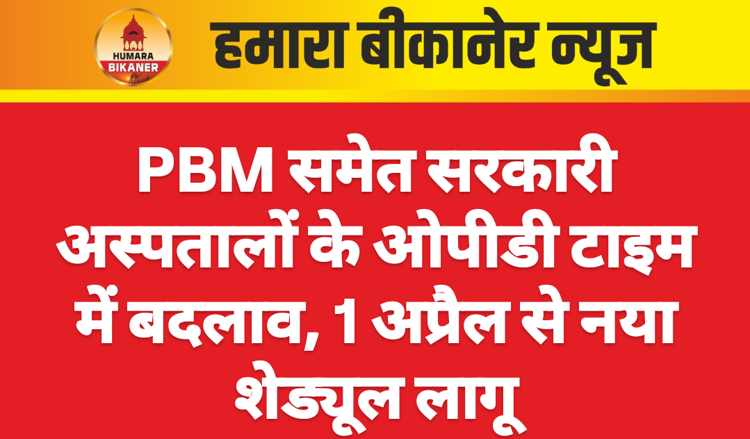 इस आदेश के अनुसार दिनांक 1 अप्रैल 2026 से 30 सितंबर 2026 तक पीबीएम हॉस्पिटल, एसएसबी हॉस्पिटल, राजकीय जिला अस्पताल, बीकानेर एवं गंगाशहर सेटेलाइट हॉस्पिटल में ओपीडी मरीजों को देखने का समय सुबह 8 बजे से दोपहर 2 बजे तक निर्धारित किया गया है।