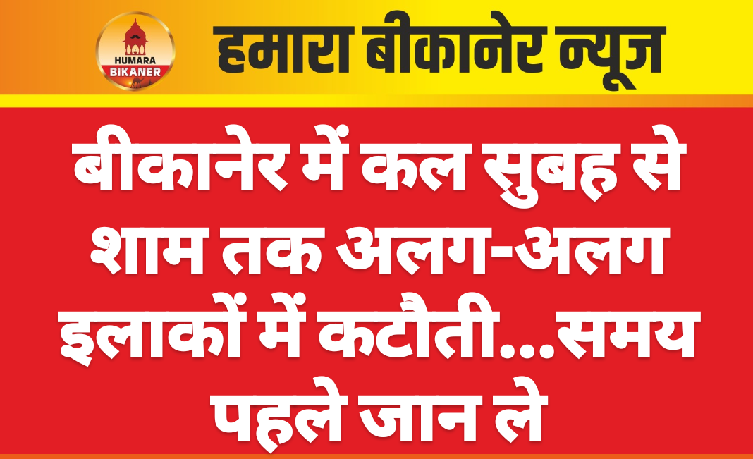 बिजली-कटौती बीकानेर शहर के निम्न क्षेत्रों में विद्युत तंत्र के रख-रखाव के दौरान शनिवार 04 अप्रैल को प्रातः 09:00 बजे से 11:30 बजे तक विद्युत आपूर्ति बाधित रहेगी।सरकारी अस्पताल, एम.पी. कॉलोनी सेक्टर 9 से 17, उन मंडी, पूगल रोड ब्रिज, एम.पी. कॉलोनी सेक्टर-5, रामपुरा बाईपास, रंगोली फैक्ट्री, लालगढ़ स्टेशन, एम.पी. कॉलोनी सेक्टर 3 और 4, कबीर आश्रम, सर्वोदय बस्ती, ओड्डो का मोहल्ला, रेलवे वर्कशॉप, गली नंबर 23, राजीव नगर, सर्वोदय बस्ती सेक्टर 6 से 10, एम.पी. कॉलोनी सेक्टर 1, 2, 6, 7 व 8 का क्षेत्र।