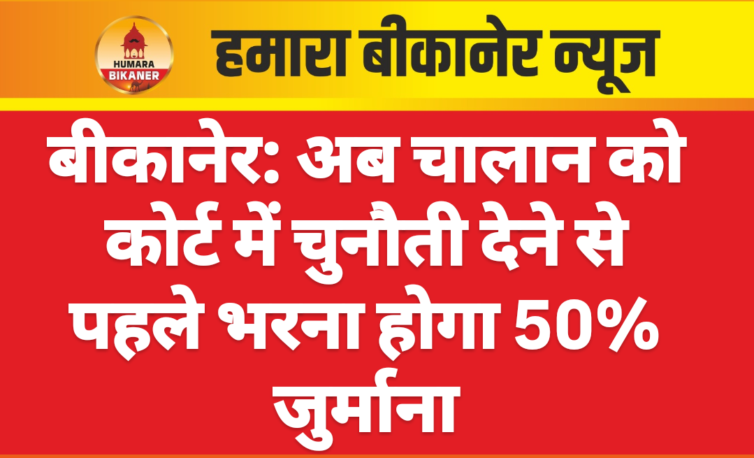 बीकानेर। यातायात नियमों के उल्लंघन पर वाहन के कटने वाले चालान को लेकर सरकार ने बड़ा और सख्त फैसला लागू कर दिया है। अब किसी भी वाहन चालक को चालान के खिलाफ न्यायालय में चुनौती देने से पहले कुल जुर्माने की 50 प्रतिशत राशि जमा करानी अनिवार्य हो गई है। बिना यह राशि जमा किए कोर्ट में सुनवाई का अवसर नहीं मिलेगा। नए वित्तीय वर्ष 1 अप्रेल से यह नियम लागू हो रहा है। केन्द्र सरकार की ओर से गजट नोटिफिकेशन जारी किया जा चुका है। अब यह नियम लागू होने के साथ ही नई व्यवस्था के तहत चालान के खिलाफ सीधे अदालत में दावा नहीं किया जा सकेगा। उससे पहले आधा जुर्माना भरना होगा। नए प्रावधान के अनुसार, यदि किसी व्यक्ति को चालान की राशि अधिक लगती है या चालान को गलत मानता है, तो उसे पहले आधा जुर्माना जमा कराना होगा। इसके बाद ही वह न्यायालय में अपनी बात रख सकेगा।