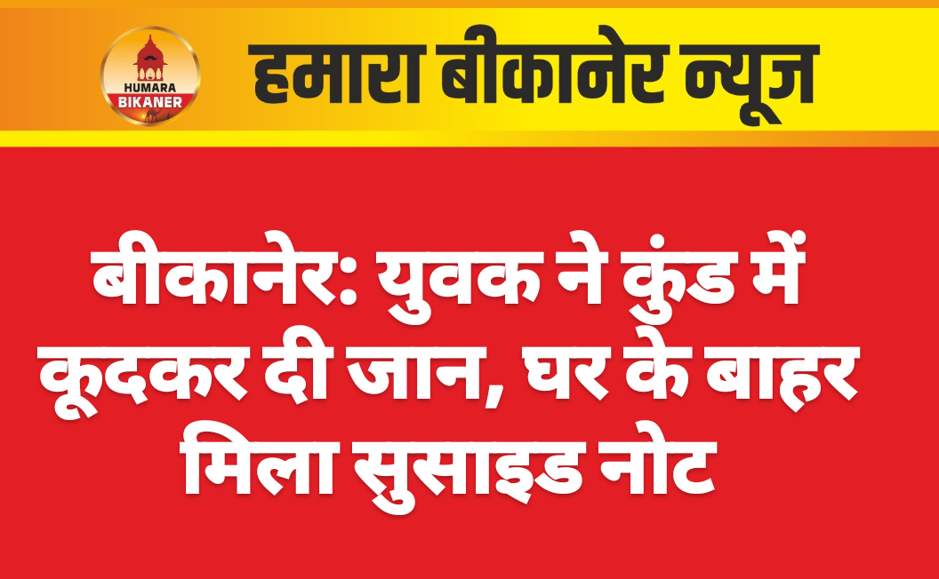 बीकानेर। कुंड में कूदकर युवक द्वारा आत्महत्या करने की खबर सामने आयी है। घटना गंगाशहर पुलिस थाना क्षेत्र की है। जहां पर युवक द्वारा कुंड में कूदकर आत्महत्या कर ली। मृतक के घर के आगे सुसाइड नोट भी चस्पा किया हुआ मिला है। जानकारी के अनुसार नई लाईन स्थित धीरज ने अपने घर के कुंड में कुदकर आत्महत्या कर ली।मृतक का शव घर के कुंड में मिला है। सूचना मिलते ही पुलिस टीम माके पर पहुंची और शव को कुंड से निकाला गया है। बताया जा रहा है कि धीरज घर पर अकेला रहता थ। उसका परिवार मध्यप्रदेश में रहता है। फिलहाल सुसाइड के कारणों के बारें में जानकारी नहीं मिल पायी है।
