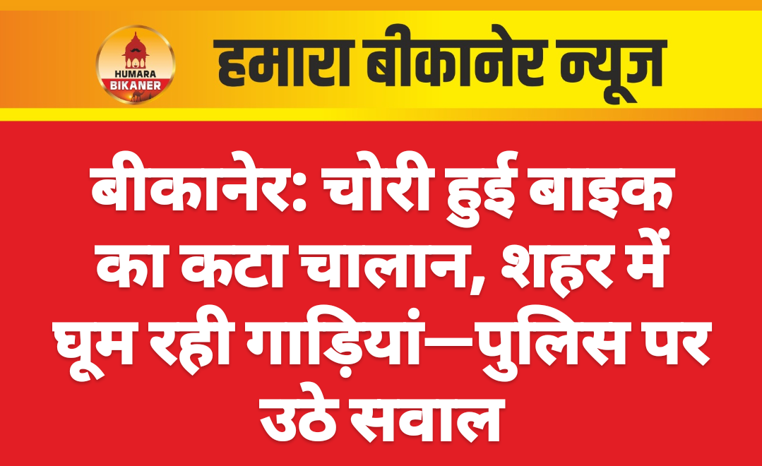 बीकानेर। पिछले काफी लंबे समय से बीकानेर शहर में बाइक चोरी की वारदात हो रही है। आये दिन बाइक चोर अस्पताल, मॉल आदि जगहों से बाइकें चोरी हो गई। इसी क्रम में एक युवक की बाइक करीब दो साल पहले ही चोरी हो गई। जिसकी श्किायत पुलिस थाने में दी गई लेकिन बाइक कही पर भी नहीं मिली। अचानक युवक के मोबाइल पर एक चालान आया जिसमें जोशीवाड़ा कोटगेट थाना क्षेत्र से कटा हुआ था। मजे की बात तो यह है चोरी हुई गाड़ी बीकानेर ंमें ही घुम रही है लेकिन पुलिस के हाथ नहीं लगी है। चालान तक कटा गया क्या चालान की राशि भरी या नहीं अगर भरी है तो पुलिस ने गाड़ी को ढूढने की कोशिश की आखिर गाड़ी का मालिक कौन है। लेकिन पुलिस ने इतना उचित नहीं समझा। ऐसी सैकड़ों गाडिय़ां है जो चोरी होने के बाद बीकानेर शहर में ही घुम रही है लेकिन पुलिस की नजर से दूर है।