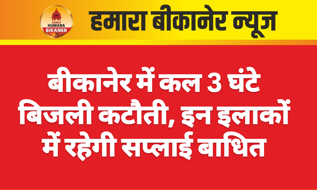 बिजली-कटौती बीकानेर शहर के निम्न क्षेत्रों में विद्युत तंत्र के रख-रखाव के दौरान बुधवार 08 अप्रैल को प्रातः 07:30 बजे से 10:30 बजे तक विद्युत आपूर्ति बाधित रहेगी।एसबीआई बैंक, केजी कॉम्प्लेक्स, गौड़ सभा भवन, खजांची भवन, कोठारी पैलेस, चोपड़ा कटला, रोजगार कार्यालय, रानी बाजार D3 सर्कल, एपेक्स हॉस्पिटल, कथूरिया, मोहन मिस्टान, एएसजी आई हॉस्पिटल, मरुधर होटल, रिलायंस डिजिटल और यादव कॉम्प्लेक्स का क्षेत्र।