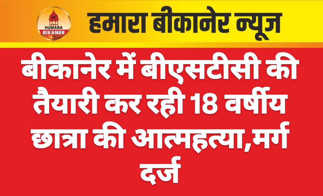 बीकानेर। परीक्षा की तैयारी करने वाली 18 वर्षीय युवती द्वारा सुसाइड करने की खबर सामने आयी है। घटना जेएनवीसी पुलिस थाना क्षेत्र के पटेल नगर में 8 अप्रैल की साढ़े बारह बजे के आसपास की है। इस सम्बंध में पटेल नगर निवासी रामरतन ने रिपोर्ट दी है।