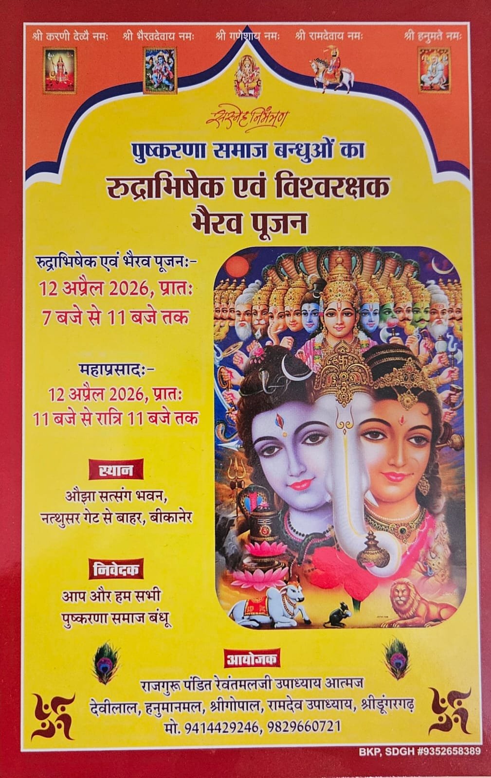 बीकानेर। आगामी 12 अप्रेल को होने जा रहे बीकानेर पुष्करणा समाज का रुद्राभिषेक विश्वरक्षक भैरव पूजन का आयोजन स्थानीय ओझा सत्संग भवन में किया जाएगा। जिसके लिये शहरी और ग्रामीण इलाकों में जनसंपर्क कर कार्यक्रम में शामिल होने का निमंत्रण दिया जा रहा है। डॉ सत्यप्रकाश आचार्य की अगुवाई में अनेक पुष्करणा मोहल्लों में संपर्क कर न्यौता दिया गया। तो नाल,शोभासर,सांवरा, गडियाला,हदां,गिरजासर,झझू,मनचितीया,नोख आदि गावों में सर्व पुष्करणा समाज के हो रहे इस आयोजन के लिए अधिक से अधिक संख्या में शामिल होने के लिए निमंत्रण और जनसंपर्क अभियान किया जा रहा है।आयोजक देवीलाल उपाध्याय का गांवों में समाज के लोगों ने माल्यार्पण कर साफा व शॉल पहनाकर स्वागत किया और विश्वास दिलाया कि गांवों के पुष्करणा समाज के लोगों को ज्यादा से ज्यादा संख्या में कार्यक्रम में जोड़ा जाएगा। उपाध्याय के साथ में श्याम देराश्री,रमेश पुरोहित,पूर्व पार्षद लक्ष्मण व्यास,मनमोहन व्यास ने भी गांवों में जनसंपर्क किया। झझू गांव में स्वागत करने वालों में शिवरतन उपाध्याय,भंवरलाल उपाध्याय,रामेश्वर पुरोहित,रूपजी पुरोहित,धनराज उपाध्याय,नेक बिस्सा,महावीर बिस्सा,प्रेमराज उपाध्याय,भीम उपाध्याय व हदा गांव के श्याम सुंदर पुरोहित,भगवान पुरोहित और सुरेश व्यास,प्यारेलाल सरपंच सांवरा,अजय सरपंच नोक,महेश,बाबूलाल,कन्हैया लाल छंगाणी,महेश,नंद किशोर,पप्पू छंगाणी सांवरा गांव व गडियाला लालचंद पुरोहित,नरेश कुमार पुरोहित,मनचितिया के कन्हैयालाल पुरोहित सेवड़ा,बाबूलाल,कन्हैयालाल लक्ष्मण,स्वरूप पुरोहित आदि लोग शामिल थे।