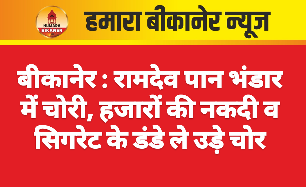 बीकानेर। बीकानेर के एक व्यापारी की दुकान में चोरी की वारदात होना सामने आया है। जहां चोरों ने दुकान के ताले तोडक़र सामान व नकदी चोरी कर ली। चोरी की वारदात कोटगेट थाना क्षेत्र के फड़ बाजार स्थित रामदेव पान भंडार में हुई। इस संबंध में 45 नंबर कोठी के सामने पुलिस लाईन रोड़ निवासी ओमप्रकाश ने अज्ञात चोरों के खिलाफ मुकदमा दर्ज कराया है। परिवादी ने बताया कि उसकी बिड़ी-सिगरेट-गुटका आदि ही होलसेल की दुकान फड़ बाजार पाईंट पर रामदेव पान भंडार के नाम से है। जिसमें 27 जुलाई को सुबह करीब चार से पांच बजे किसी अज्ञात व्यक्ति ने दुकान का ताला तोडक़र गोल्डफलेक सिगरेट के करीब 25-30 डंडा और गल्ले का ताला तोडक़र उसमें रखे करीब 50 से 60 हजार रुपए चोरी कर ले गया। पुलिस ने परिवादी की रिपोर्ट पर मामला दर्ज कर जांच शुरू कर दी।