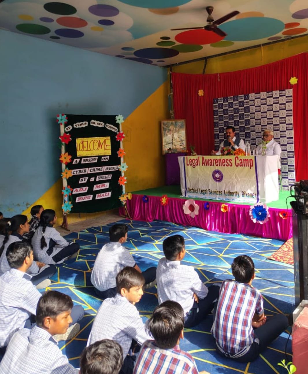 आज दिनांक 10 अप्रैल 2026 को हमारे विद्यालय सेन्ट वीनस पब्लिक सीनीयर सैकण्डरी विद्यालय जयनारायण व्यास नगर बीकानेर, में हाईकोर्ट के आदेशानुसार जिला विधिक सेवा प्राधिकरण द्वारा साईबर क्राइम पर एक जागरूकता की कार्यशाला का आयोजन किया गया । जिसमें *ADJ* कोर्ट नः 3 के माननीय *ADJ* श्री धनपत माली जी ने कक्षा 8वीं से 12वीं के विद्यार्थियों को साईबर क्राईम के बारे में सरल और सुन्दर भाषा में समझाया । बच्चों को बताया कि आज पूरी दुनिया हमारी मुठ्ठी में है यानि मोबाईल हमारी मुठ्ठी में है, और मोबाईल का जमाना है परन्तु इसके इस्तेमाल में जागरूक रहने की पूर्ण आवश्यकता है। उन्होने एक स्लोगन *Think Before Click* द्वारा यह भी बताया किसी भी लिंक पर क्लिक करने से पहले कुछ सेकण्ड सोचें जरूर, जिससे आप साईबर फ्राॅड से बच सकतें । मोबाईल ने बहुत सुविधा दी है और सारे कार्यों को तेज गति दी है लेकिन इसका उपयोग सावधानीपूर्वक करना आवश्यक है, शाला के संस्थापक श्री लालचंद तुलसानी ने शाला का स्मृति चिन्ह भेंट कर उनका धन्यवाद ज्ञापित किया।
