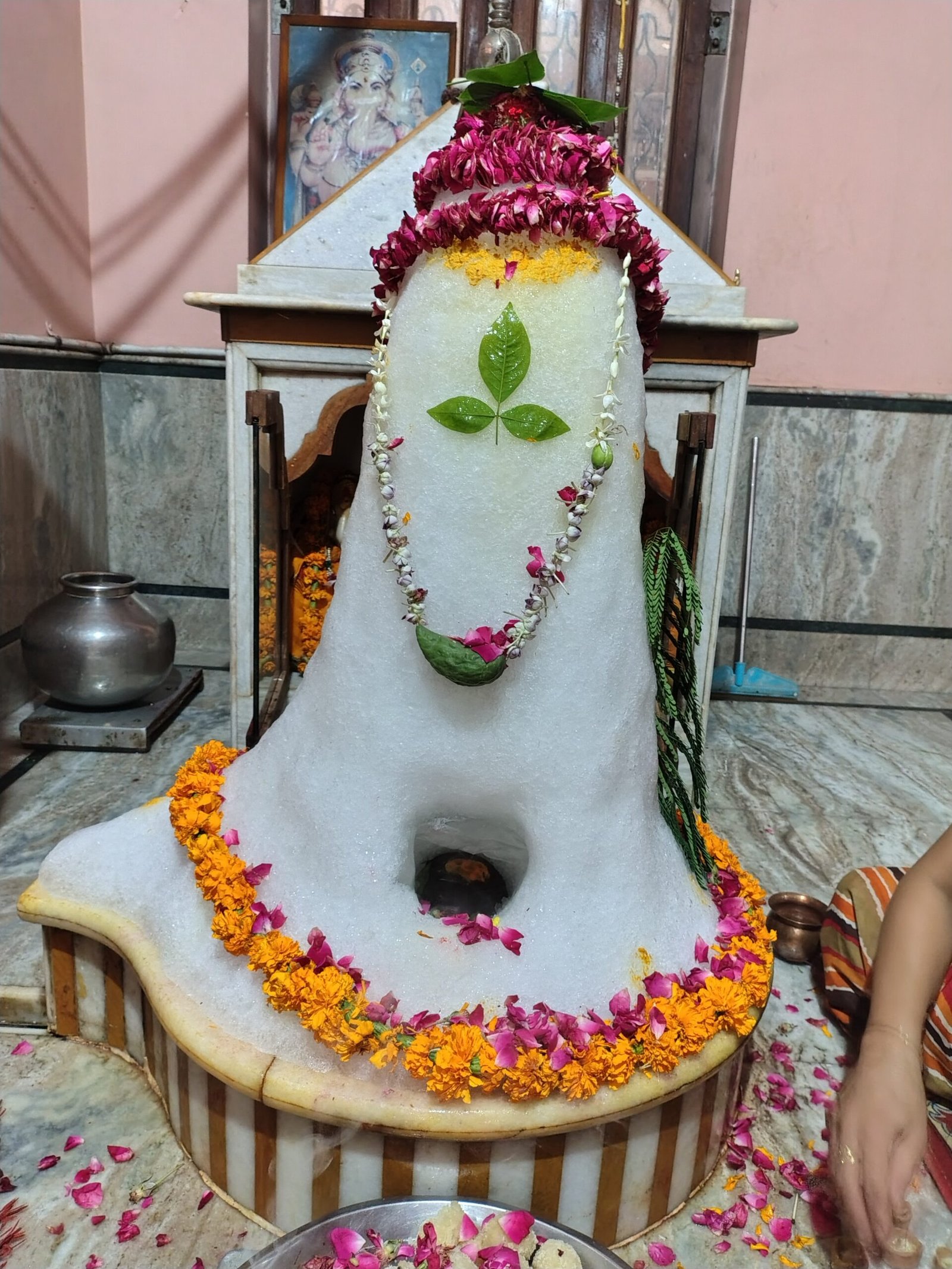 शिवलिंग को दुर्लभ पुष्पों – गुलाब, गेंदा और श्वेत मल्लिका – से भव्य रूप से सजाया गया। उसके चारों ओर मनोहारी फूलों की माला और बेलपत्र की आभा ने इस दृश्य को अत्यंत दिव्य बना दिया। शिवलिंग के अमरनाथ रूप के दर्शन करते ही श्रद्धालुओं की आंखें श्रद्धा से छलक उठीं।