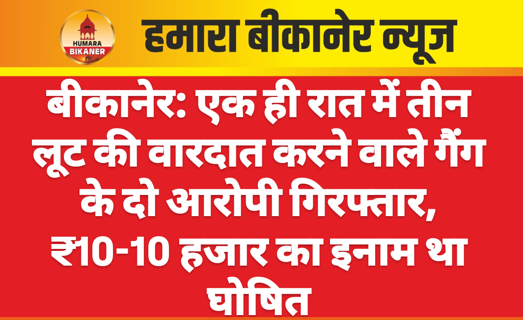 बीकानेर। आईजी बीकानेर की टीम ने कार्रवाई करते हुए एक ही रात में तीन अलग-अलग लूट की वारदात को अंजाम देने वाले आरोपियों को गिरफ्तार किया है। इन लूटरों पर एसपी कावेन्द्र सागर की ओर से दस-दस हजार के इनाम घोषित कर रखे थे।