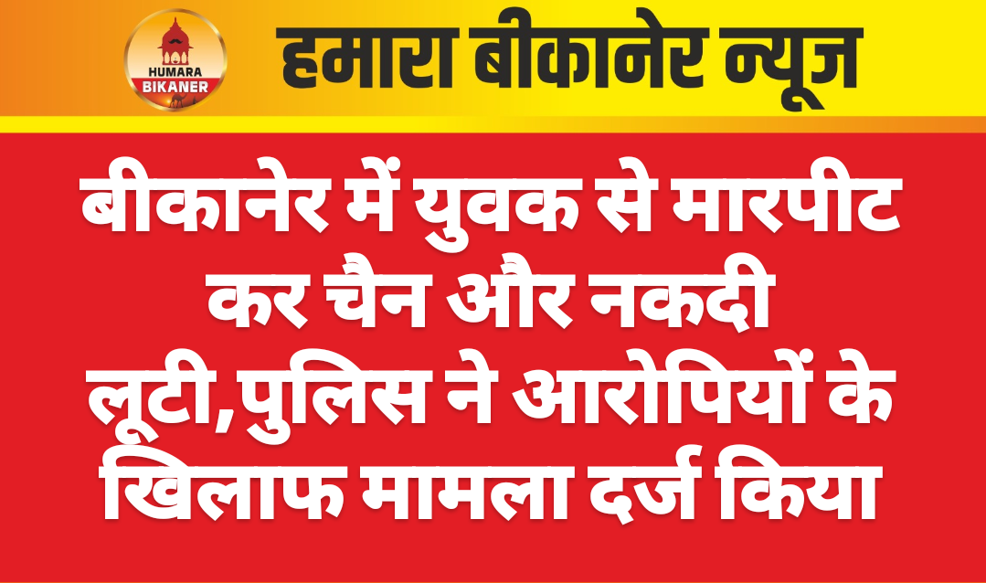 बीकानेर। युवक के साथ मारपीट कर हजारों रूपए और चैन छीन ले जाने का मामला सामने आया है। इस सम्बंध में जेएनवीसी पुलिस थाने में साधासर निवासी रमेश तर्ड ने विकास, सूरेन्द्र, शिशपाल व अन्य के खिलाफ मुकदमा दर्ज करवाया है। घटना 7 अप्रैल को वैष्णोधाम की है।