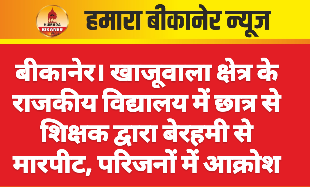बीकानेर। विद्यालय में बच्चे के साथ मारपीट करने की खबर सामने आयी है। घटना खाजूवाला पुलिस थाना क्षेत्र से जुड़ी है। जहां पर बच्चे के साथ मारपीट की गयी है। इस सम्बंध में बच्चे के पिता ने दी रिपोर्ट में बताया कि उसका पुत्र राजकीय विद्यालय में पढता है।स्कूल में 29 जुलाई को शिक्षक सुरेन्द्र ने बच्चे को डंडे से बेरहमी से पीटा। सूचना मिलने पर जब वह स्कूल पहुंचा, तो बच्चा रोता हुआ बेहाल मिला। मारपीट का कारण पूछा, तो शिक्षक ने कहा कि इस स्कूल में पढ़ाना है, तो इस तरह रहना पड़ेगा।