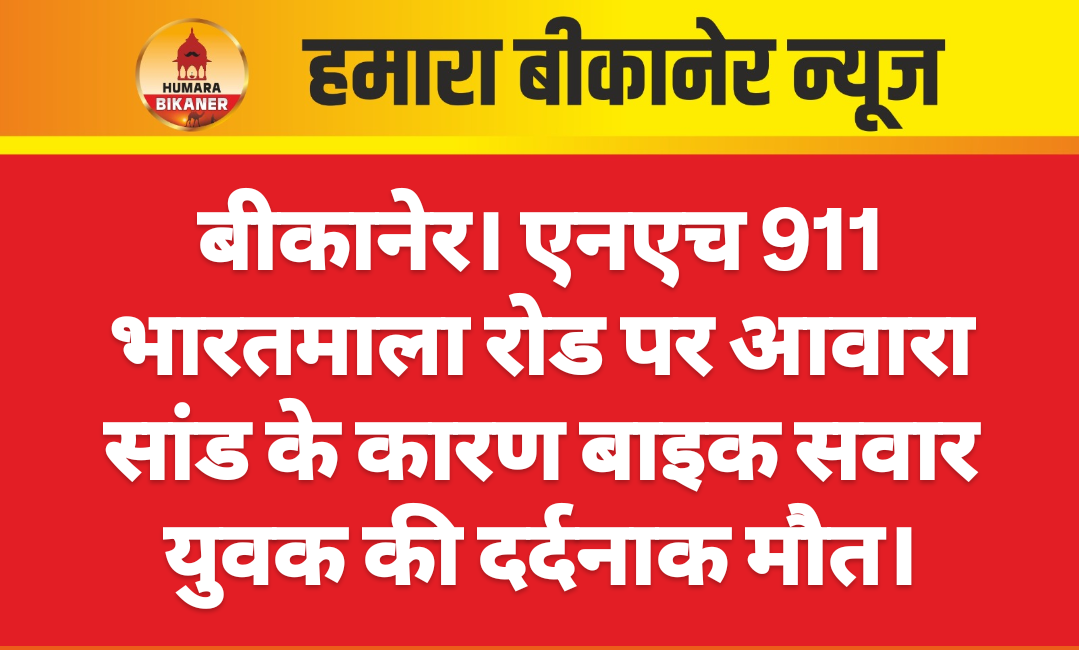 बीकानेर। बाइक के आगे सांड के आ जाने से युवक की मौत हो जाने की खबर सामने आयी है। घटना दंतौर पुलिस थाना क्षेत्र के एनएच 911 भारतमाला रोड़ पर 28 जुलाई की रात की है। इस सम्बंध में सुभाष जाट ने रिपोर्ट दी है।