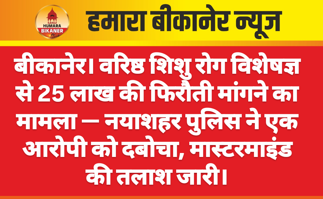 बीकानेर। वरिष्ठ शिशु रोग विशेषज्ञ डॉ.श्याम अग्रवाल से हिस्ट्रीशीटरों द्वारा 25 लाख की फिरौती मांगने के मामले में नयाशहर पुलिस ने एक जने को पकड़ा हैं। थानाधिकारी विक्रम तिवाड़ी ने बताया कि साइबर सेल के एएसआई दीपक यादव के इनपुट पर भवानी नाम के लड़के को दस्तयाब किया हैं। भवानी प्रकरण का मास्टर माइंड विष्णु का रिश्तेदार है। इस मामले में विष्णु साध,अभिषेक पंवार भी नामजद थे। जिनकी गिरफ्तारी जल्द की जाएगी। गौरतलब रहे कि परिवादी डॉ.श्याम अग्रवाल ने बताया कि वह मालियों के मोहल्ले में एक शिशु अस्पताल संचालित करते हैं। 24 जुलाई की रात करीब पौने दो बजे विष्णु साध,अभिषेक पंवार सहित कुछ अन्य लोग उनके पास पहुंचे और 25 लाख रुपये की फिरौती की मांग की। साथ ही हर माह एक लाख रुपये की ‘बंधी देने का दबाव बनाया। ऐसा न करने पर जान से मारने की धमकी दी गई।अगले दिन दोपहर को आरोपी दोबारा डॉक्टर की क्लीनिक में आए और उनके चैबर में घुसकर दुबारा धमकाया। यह पूरी घटना क्लिनिक के सीसीटीवी कैमरे में कैद हो गई। वहीं,धमकी की ऑडियो क्लिप भी डॉक्टर ने रिकॉर्ड कर रखी थी,जिसे उन्होंने पुलिस को सौंप दिया है।