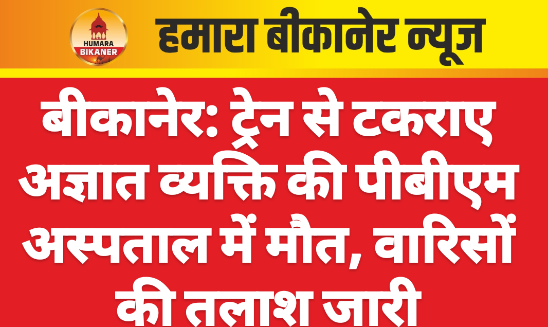 बीकानेर। पीबीएम अस्पताल के ट्रोमा सेंटर में एक अज्ञात व्यक्ति की इलाज के दौरान मौत हो गई। व्यक्ति को रेलवे कर्मचारियों द्वारा ट्रेन से टकराने के बाद घायलावस्था में भर्ती कराया गया था। पुलिस ने शव को मोर्चरी में सुरक्षित रखकर वारिसों की तलाश शुरू कर दी है। मुक्ता प्रसाद नगर थाने के एएसआई हनुमान सिंह ने बताया कि 28 जुलाई की रात 9:15 बजे ट्रॉमा सेंटर, पीबीएम हॉस्पिटल में एक अज्ञात घायल व्यक्ति को रेलवे कर्मचारियों अनिल और राजेन्द्र द्वारा भर्ती कराया गया था।