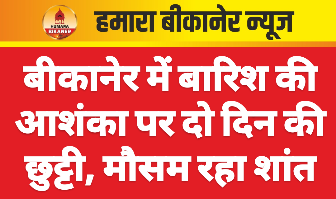बीकानेर। बीकानेर में शुक्रवार को तेज बारिश और अतिवृष्टि की आशंका के चलते सरकारी ओर प्राइवेट स्कूल की जिला कलेक्टर ने छुट्टी तो कर दी लेकिन बारिश के नाम पर कुछ नहीं हुआ। महज एक-दो मिनट के लिए हल्की रिमझिम बारिश शहर के कुछ हिस्सों में हुई। अब शनिवार को भी स्कूलों में भी छुट्टी है। न सिर्फ स्कूल बल्कि कोचिंग भी बंद कर दिए गए हैं। अब तीन दिन के अवकाश के बाद स्कूल-कोचिंग सोमवार को फिर से शुरू होंगे। दरअसल, झालावाड़ में स्कूल की छत गिरने से सात बच्चों की मौत के बाद सक्रिय हुए जिला प्रशासन ने किसी तरह की रिस्क लेने के बजाय छुट्टी करना ही उचित समझा। शुक्रवार व शनिवार को स्कूल की छुट्टी कर दी गई, जबकि रविवार को सार्वजनिक छुट्टी के बाद सोमवार को फिर से स्कूल शुरू होंगे।