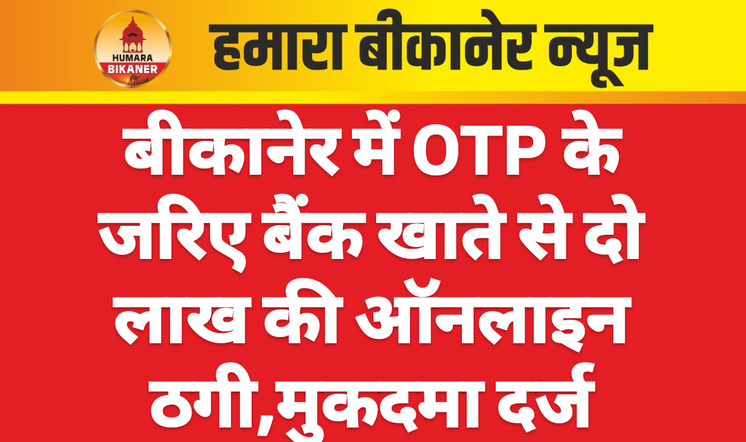 बीकानेर। खाते से ओटीपी से करीब दो लाख की धोखाधड़ी कर पैसे काटने का मामला सामने आया है। इस सम्बंध में जसरासर पुलिस थाने में कुकणिया निवासी पूजा कंवर ने अज्ञात के खिलाफ मुकदमा दर्ज करवाया है।घटना 3 जनवरी 2025 की बतायी जा रही है। इस सम्बंध में एसपी ऑफिस से प्राप्त डाक के आधार पर मुकदमा दर्ज किया गया है। परिवादी के अनुसार अज्ञात व्यक्ति ने उसके खाते से ओटीपी के माध्यम से 1 लाख 99 हजार 998 रूपए श्रटते हुए धोखाधड़ी की। पुलिस ने प्रार्थी की रिपोर्ट के आधार पर मुकदमा दर्ज कर जांच शुरू कर दी है।