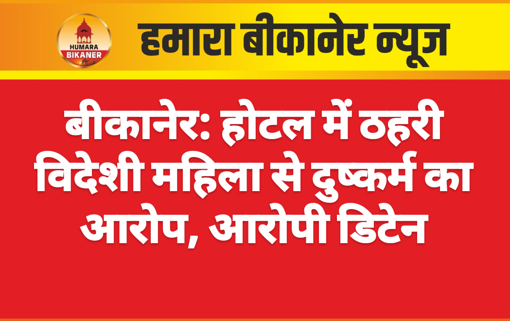 बीकानेर। बीकानेर में होटल में ठहरी विदेशी महिला के साथ दुष्कर्म का मामला सामने आया है। विदेशी महिला की ओर से दुष्कर्म का आरोप लगाए जाने पर पुलिस अधिकारियों में हड़कंप मच गया।भ्रमण के लिए आई विदेशी महिला लालगढ़ परिसर स्थित एक होटल में ठहरी थी। होटल में ही विदेशी महिला के साथ दुष्कर्म किए जाने का आरोप लगा है। मामला पुलिस तक पहुंचा तो अधिकारियों में हड़कंप मच गया। आनन-फानन में विदेशी महिला को पीबीएम अस्पताल ले जाया गया। अस्पताल अधीक्षक सुरेंद्र वर्मा ने बताया कि चिकित्सकों का मेडिकल बोर्ड गठित किया गया है जो विदेशी महिला का परीक्षण करेगा।