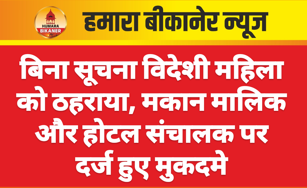 बीकानेर। पुलिस को सूचना दिए बिना विदेशी महिला को मकान में ठहराने पर मकान मालिक के खिलाफ व्यास कॉलोनी थाने में मुकदमा दर्ज किया गया है। विदेशी महिला के साथ होटल में दुष्कर्म का मामला उजागर हुआ तो पुलिस ने छानबीन की और मुकदमा दर्ज कराया। फिलीपिंस की महिला पवनपुरी के तीन नंबर सेक्टर स्थित एक मकान में रुकी थी। वह 26 जुलाई से इसी मकान में रह रही थी। मकान मालिक की ओर से विदेशी महिला को ठहराने के संबंध में सी फार्म ऑनलाइन नहीं भरा गया और कोई सूचना भी नहीं दी गई। सीआईडी विशेष शाखा जोन के एसआई भोमसिंह ने विदेशियों विषयक अधिनियम 1946 का उल्लंघन मानते हुए व्यास कॉलोनी पुलिस थाने में मकान मालिक के खिलाफ मुकदमा दर्ज कराया है। मामले की जांच एसआई शारदा को सौंपी गई है। एसएचओ सुरेन्द्र पचार ने बताया कि पवनपुरी स्थित मकान में दो विदेशी महिलाओं को ठहराया गया था।