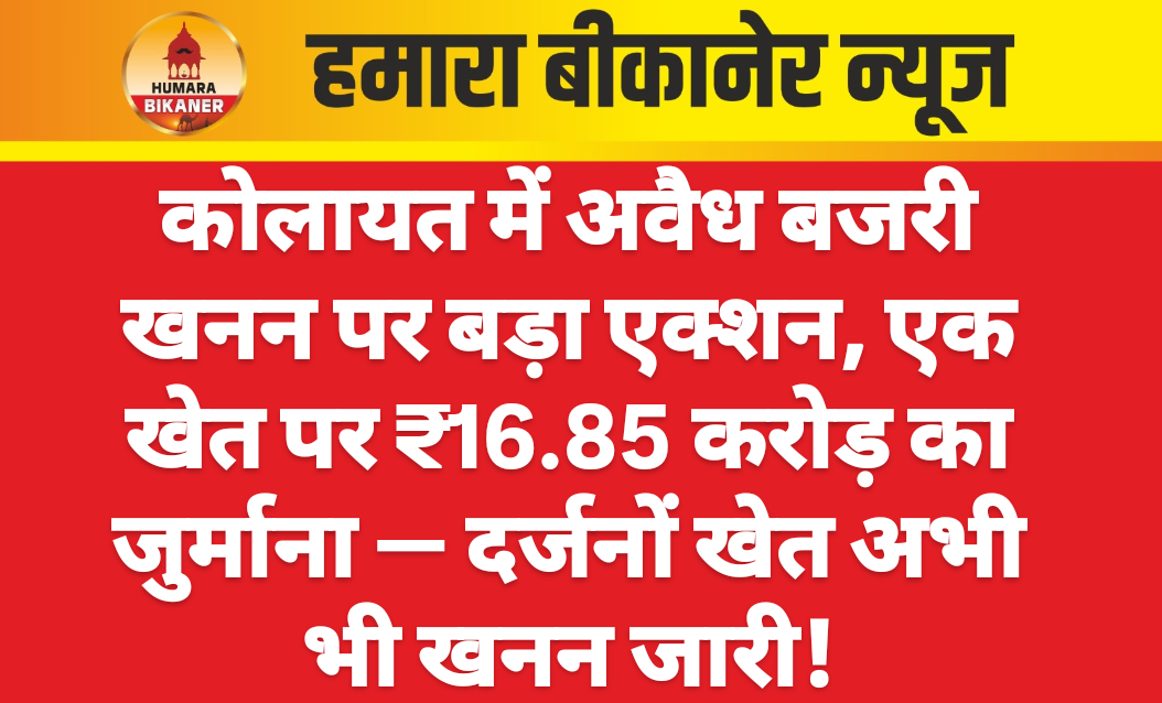 माइन्स और रेवेन्यू डिपार्टमेंट ने एक ही खेत में कार्रवाई करके 16 करोड़ 85 लाख रुपए का जुर्माना लगाया है, जबकि हकीकत में अकेले कोलायत में ऐसे दर्जनों खेत है। जहां से अवैध खनन किया जा रहा है। पिछले कई सालों से इन खेतों में अवैध रूप से बजरी का खनन किया जा रहा है।