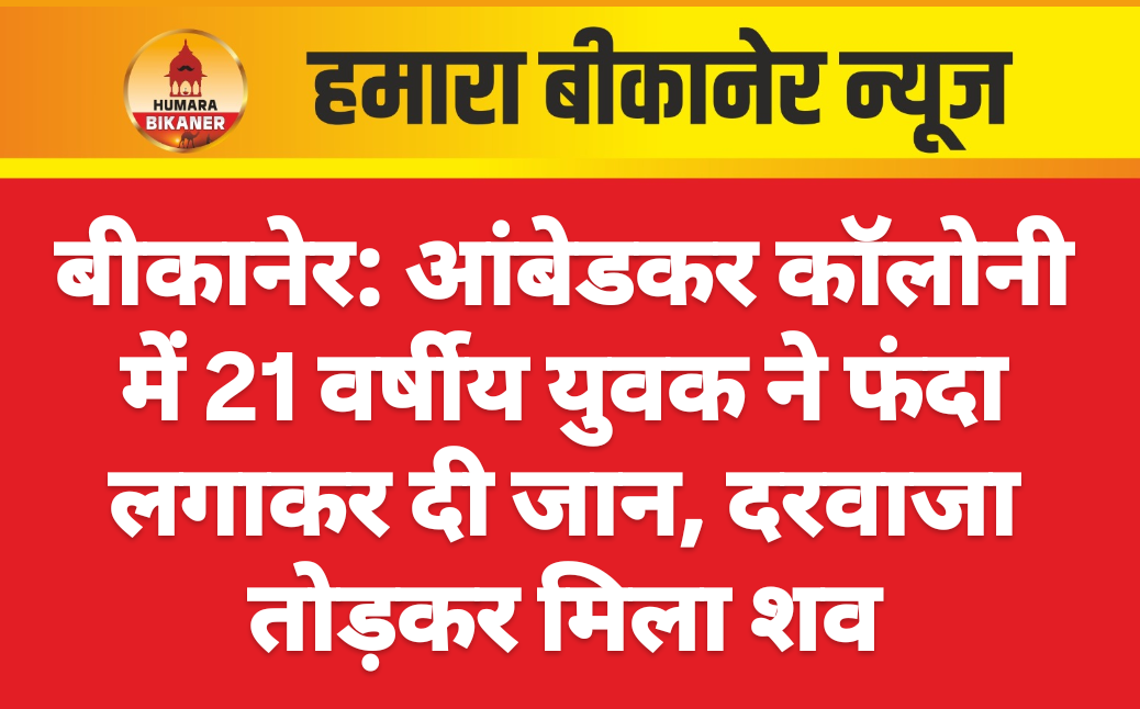 बीकानेर। JNVC थाना क्षेत्र के आंबेडकर कॉलोनी में 21 वर्षीय युवक का शव पंखे के हुक से लटका मिला। इस सबंध में मृतक के भाई पवन कुमार ने बताया की घटना 5 अगस्त को घर के ऊपर बने कमरे का लंबे समय तक दरवाजा खटखटाने के बाद भी जवाब नहीं मिला तो उसने दरवाजा तोड़ा। अंदर देखा तो उसका भाई भवानी शंकर पुत्र राजकुमार नायक फंदे पर लटका हुआ था। नीचे उतारने पर युवक में कुछ समय तक धड़कन चल रही थी, परिजन उसे तुरंत अस्पताल लेकर पहुंचे, जहां डॉक्टरों ने मृत घोषित कर दिया।