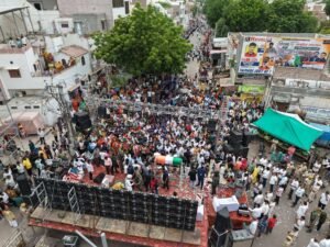 बीकानेर,देश के 79वें स्वतंत्रता दिवस से ठीक पहले बीकानेर में एक किलोमीटर लंबा प्रतीकात्मक तिरंगा लहराया गया। इस दौरान बीकानेर के गोकुल सर्किल से विवेक बाल निकेतन स्कूल तक तिरंगा लहराया तो हर कोई राष्ट्रभक्ति के रंग से पूर्ण रूप से लबरेज था। जब राष्ट्रगान शुरू हुआ तो एक किलोमीटर के क्षेत्र में हर कोई “जन-गण-मन” में लीन था और तब किसी प्रकार ध्वनि प्रदूषण -वाहनों की आवाज नदारद थी।