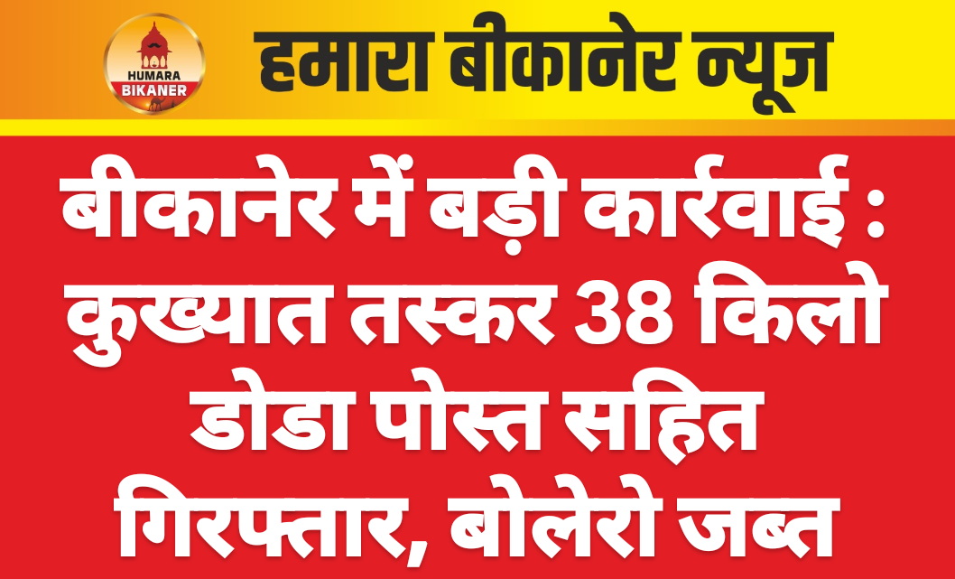 बीकानेर। बीकानेर में नशा तस्करों ने युवा पीढ़ी को खराब कर दिया है। पूरे शहर में नशेडियों की भरमार है गली गली में नशा बिकता नजर आता है। वहीं पुलिस भी आये दिन नशा तस्करों को पकड़ती है। इसी क्रम में डीएसटी व कोलायत पुलिस ने कुख्यात तस्कर को 38 किलो डोडा पोस्त सहित गिरफ्तार कर लिया। डीएसटी के एएसआई रामकरण सिंह की सूचना पर डीएसटी व थानाधिकारी कोलायत लखवीर सिंह मय टीम ने आरोपी चक विजय सिंहपुरा, कोलायत थाना क्षेत्र निवासी 30 वर्षीय देवीलाल विश्नोई पुत्र बनवारी लाल धायल को पकड़ा है। आरोपी को झझू सियाणा रोड़ से पकड़ा गया। तस्करी में काम ली गई बोलेरो गाड़ी भी जब्त कर ली गई। आरोपी जोधपुर से डोडा पोस्त लाता है व बीकानेर जिले में निरंतर सप्लाई करता रहता है। आरोपी के खिलाफ मुकदमा दर्ज किया गया है। पुलिस मामले की जांच कर रही है।