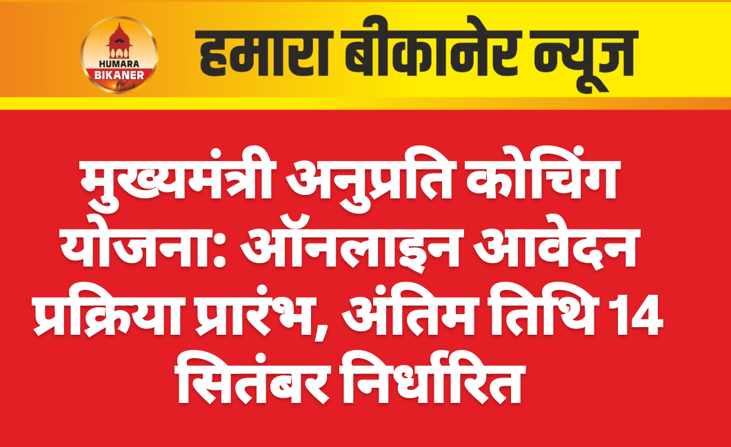 बीकानेर, 20 अगस्त। सामाजिक न्याय एवं अधिकारिता विभाग द्वारा संचालित मुख्यमंत्री अनुप्रति कोचिंग योजना के ऑनलाइन आवेदन करने की प्रक्रिया शुरू हो गई है। आवेदन की अंतिम तिथि 14 सितंबर तय की है।