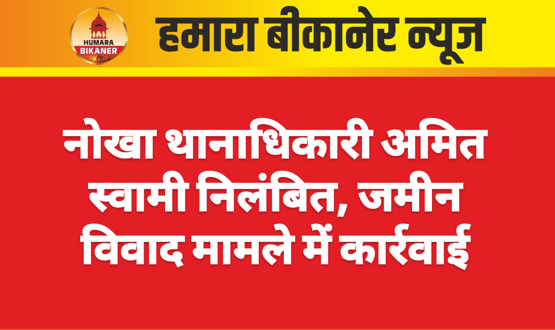 बीकानेर। बीकानेर जिले के एक थानेदार को निलंबित कर दिया गया है। जानकारी के अनुसार नोखा थानाधिकारी अमित स्वामी को निलंबित किया गया है। आईजी हेमंत कुमार शर्मा ने नोखा थानाधिकारी जमीनी विवाद के मामले में मिल रही शिकायत के आधार पर निलंबित किया गया है। अमित कुमार के खिलाफ अब विभागीय जांच होगी। बताया जा रहा है कि बीते दिनो एक विवाद के मामले में शिकायत हुई थी। जिस पर आईजी ने थानाधिकारी को निलंबित किया है।
