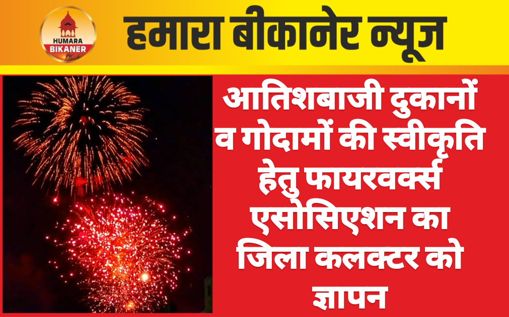 साथ ही राजस्थान प्रदेश के जयपुर, जोधपुर सहित अनेक शहरों में अस्थाई अनुज्ञापत्र धारकों से आवेदन की प्रक्रिया शुरू कर दी गई है प्रदेश के अन्य शहरों की तर्ज पर बीकानेर में भी अस्थाई अनुज्ञापत्र धारकों से आवेदन लेने की प्रक्रिया शुरू करवाई जाए | सचिव वीरेंद्र किराड़ू ने बताया कि बीकानेर में प्रस्तावित आतिशबाजी दुकाने व गोदामों के निर्माण की स्वीकृति हेतु अनापत्ति प्रमाणपत्र भी जारी करवाएं जावें और इस सम्बन्ध में पेसो कार्यालय से प्राप्त सम्बन्धित पत्रावलियां फायरवर्क्स व्यवसायियों द्वारा जिला कलक्टर कार्यालय में प्रस्तुत कर दी गई है इस पर भी यथाशीघ्र कार्यवाही करवाते हुए अनापत्ति प्रमाणपत्र जारी करवाए जाए