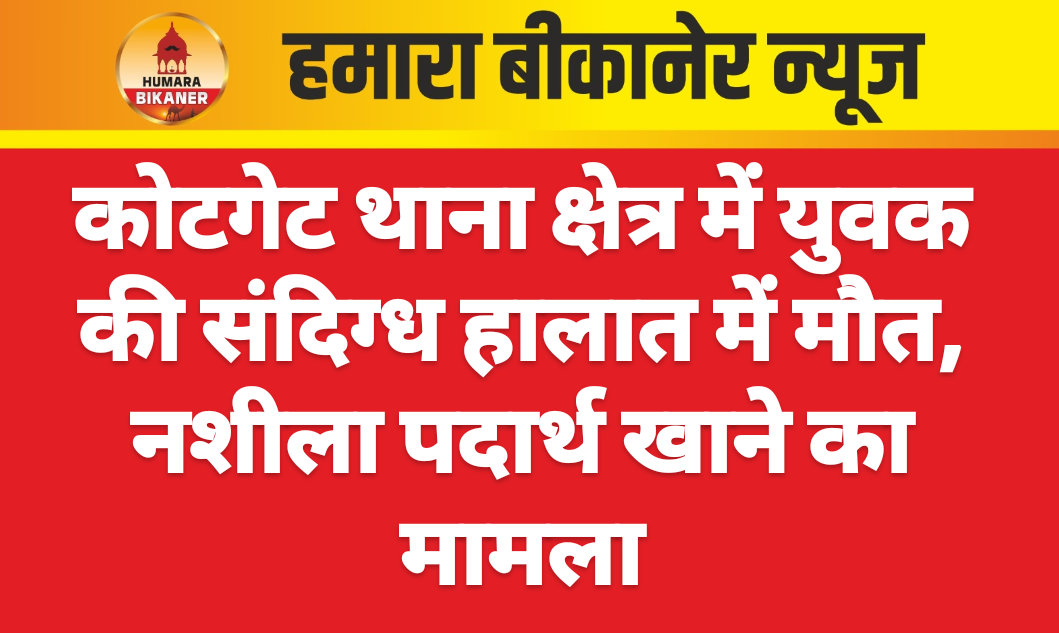 नशीला पदार्थ खाने से एक 26 वर्षीय युवक की मौत का मामला सामने आया है। घटना शहर के कोटगेट थाना क्षेत्र के कोयला गली है। जहां 22 तारीख को उदयरामसर निवासी नीरू रैगर की नशीला पदार्थ खाने से मौत हो गई। इस संबंध में मृतक के पिता विशनाराम रेगर ने मृग रिपोर्ट दर्ज करवाते हुए बताया कि उसका बेटा सुबह 9:00 बजे मजदूरी का कहकर घर से निकला था इसके बाद कोयला गली में नशीला पदार्थ खाकर वह बेहोश हो गया टैक्सी ड्राइवर श्याम चौधरी ने बेहोशी की हालत में उसे पीबीएम अस्पताल पहुंचाया जहां इलाज के दौरान उसकी मौत हो गई