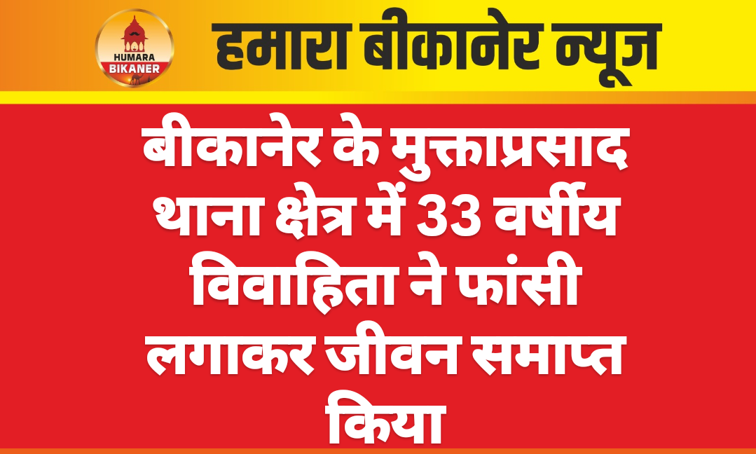 बीकानेर। मानसिक रूप से परेशान विवाहिता द्वारा फांसी लगाकर जीवनलीला समाप्त करने की खबर सामने आयी है। घटना मुक्ताप्रसाद पुलिस थाना क्षेत्र के राजीव नगर एमपी कॉलोनी में 22 अगस्त की सुबह करीब 11 बजे के आसपास की है।