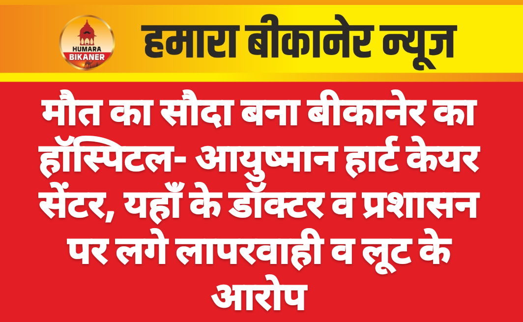 बीकानेर के सादुलगंज क्षेत्र स्थित आयुष्मान हार्ट केयर सेंटर पर एक बार फिर गंभीर आरोप लगे हैं। सुरजनसर निवासी 45 वर्षीय रामेश्वरलाल गोदारा की मौत के बाद परिजनों ने डॉक्टर बी.एल. स्वामी और अस्पताल प्रशासन पर इलाज में लापरवाही और अनियमितताओं के गंभीर आरोप लगाए हैं। परिजनों के अनुसार 22 अगस्त को मरीज को अस्पताल में भर्ती कराया गया था और डॉक्टर ने भरोसा दिलाया था कि इलाज बेहतरीन होगा और किसी प्रकार की लापरवाही नहीं होगी। इसके बाद 24 अगस्त को मरीज को ऑपरेशन थिएटर ले जाया गया, लेकिन उसके बाद परिजनों को मरीज की स्थिति के बारे में कोई स्पष्ट जानकारी नहीं दी गई। आरोप है कि 25 अगस्त की सुबह अचानक यह कह दिया गया कि मरीज की मौत हो गई है।