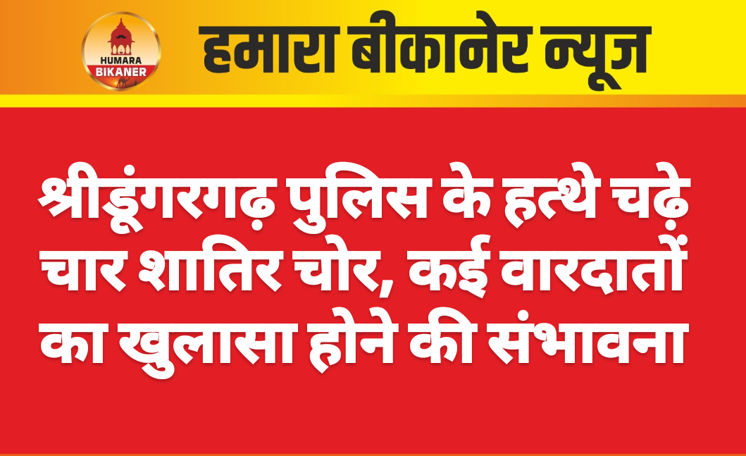 बीकानेर। श्रीडूंगरगढ़ पुलिस ने चार छंटे हुए चोरों को हिरासत में लिया है। थानाधिकारी जितेंद्र स्वामी के निर्देशन में पुलिस टीम ने क्षेत्र में चोरी की वारदातों को अंजाम देने वाले चार चोर पकड़े है। स्वामी ने प्रदेशभर के सभी थानाधिकारियों को इन चोरों के संबंध में दर्ज प्रकरणों की जानकारी भी मांगी है। स्वामी ने बताया कि १-३१ वर्षीय सनी उर्फ सुनील पुत्र धर्मवीर सांसी निवासी गगनखेड़ी, थाना सदर हांसी, हिसार, २- ४० वर्षीय विजेंद्र उर्फ फौजी पुत्र मनफुल सांसी निवासी गगनखेड़ी, ३- ४२ वर्षीय राजेश पुत्र सोनू सांसी निवासी गगनखेड़ी, ४- ४४ वर्षीय रामनिवास उर्फ राम पुत्र रोनकराम निवासी मोठ रागडांन, थाना नारनोद, हिसार को श्रीडूंगरगढ़ कस्बा इलाके में संदिग्ध घुमते हुए पकड़ा है। स्वामी ने बताया कि ये आले दर्जें के चोर है और लोगों को बातों में उलझाकर जेब तराशी व चोरी करते है। आरोपियों के पास पहचान संबंधी कोई दस्तावेज नहीं मिले है। प्रदेश भर के सभी थानों में इनकी सूचना दी गई है और किसी प्रकरण में वांछित होने की जानकारी मांगी गई है। चोरों से पूछताछ जारी है और पुलिस को कई चोरियों का खुलासा होने की उम्मीद है।