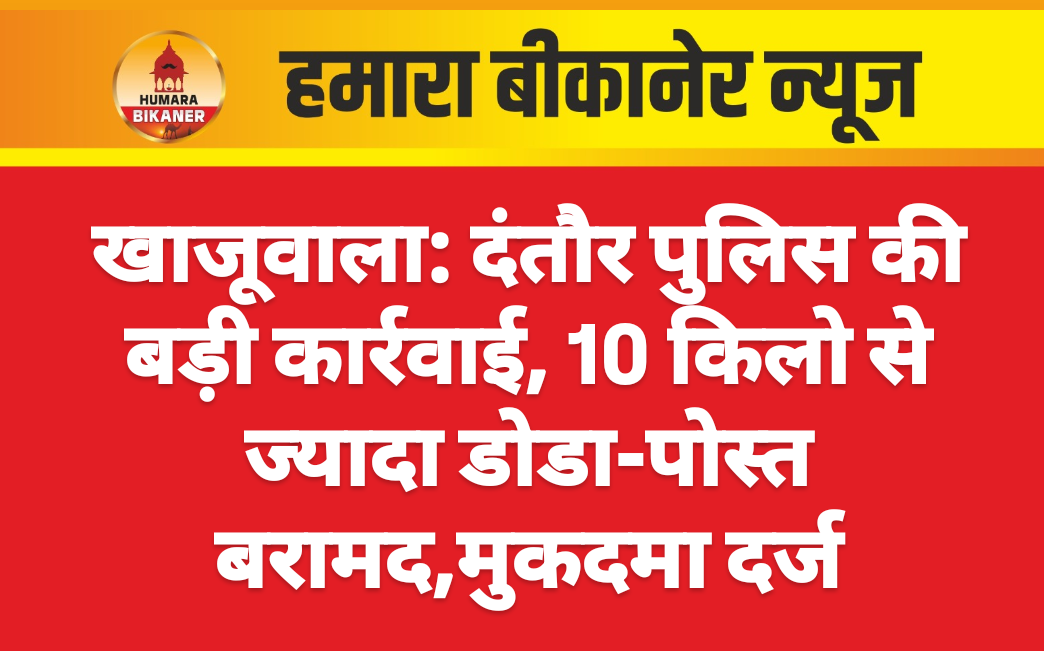 खाजूवाला। पुलिस थाना दंतौर ने मादक पदार्थों के खिलाफ बड़ी कार्रवाई करते हुए अवैध डोडा पोस्त बरामद किया है। नाकाबंदी के दौरान पुलिस ने 11 क्यू निवासी गणेश कुमार को पकड़ा, जिसके पास से 10 किलो 210 ग्राम डोडा मिला।
