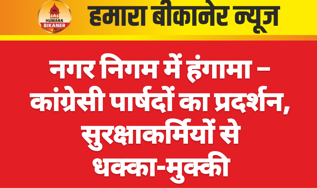 बीकानेर। बीकानेर नगर निगम में हंगाम जहां पर बीकानेर व्याप्त अव्यवस्थाओं को लेकर कांग्रेसी पार्षदों का दल निगम में प्रदर्शन करने पहुंचा था। इस दौरान प्रफुल्ल हाटीला के नेतृत्व में कांग्रेसी पार्षदों ने आयुक्त कक्ष की और घुसने का प्रयास किया तो सुरक्षकर्मियों ने रोक लिया और बाहर निकालने का प्रयास करने लगे। इस दौरान कांग्रेसी पार्षद और सुरक्षाकर्मियों के बीच कई देर तक तनातनी हुई और धक्का-मुक्की भी हुई। इसको लेकर कांग्रेसी पार्षद प्रफुल्ल हाटीला ने बताया कि शहर में जगह-जगह सीवरेज जाम है और सडक़ों पर गढ्ढें ही गढढ़़ें दिखाई दे रहे है। ऐसे में प्रशासन सुनवाई नहीं कर रहा है तो हम उनको जगााने के लिए पहुंचे थे लेकिन सुरक्षाकर्मियों ने हमारे साथ अभद्रता करने का प्रयास किया। इस दौरान कांग्रेसी पार्षद मौजूद रहें। जिनमें यूनूस ,शिवशंकर बिस्सा,प्रफुल हाटीला,आनद सिंह यूनुस अली मुजिब खिलजी वसीम फ़िरोज़ महेंद्र सिंह अविनाश राठौड़ पार्षद जुलेखा बानो वाशिम फ़िरोज़ जावेद ख़ान शशि कल्ला राठौड़ उमेश तनवीर सिंह विक्रांत चरण जीत इस्माइल खिलजी मनीष ईशान व्यास महोबत सहित अनेक जनप्रतिनिधि मौजूद रहें।