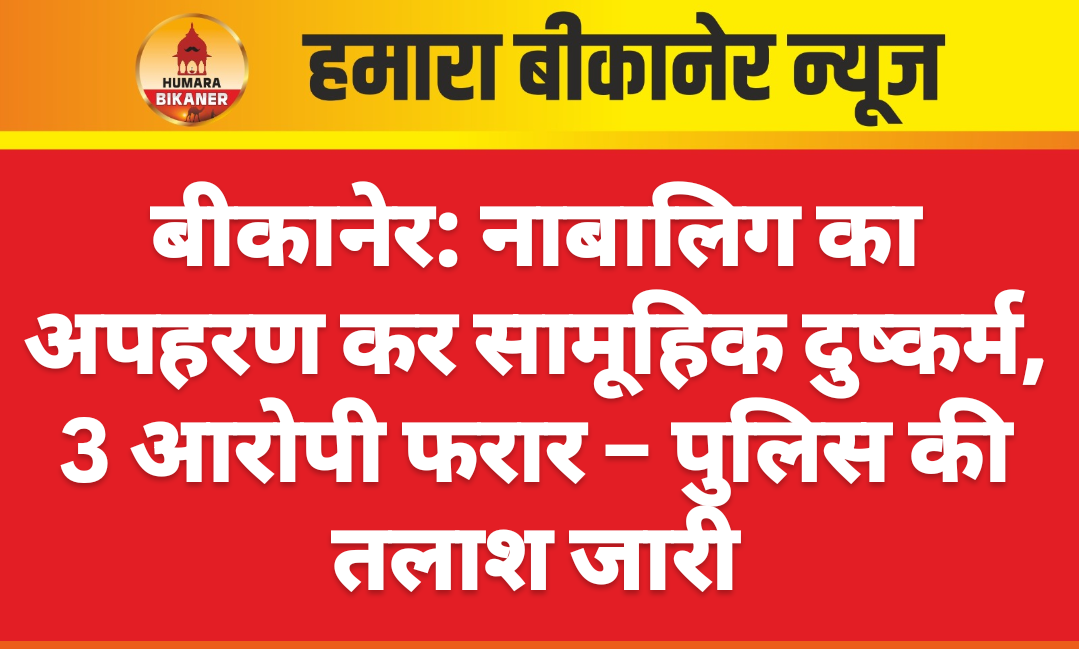 बीकानेर । नाबालिग को घर से जबरन कार में उठा ले जाने और सामूहिक रूप से बलात्कार करने का मामला सामने आया है। पीडि़ता के परिजनों की ओर से तीन युवकों के खिलाफ सदर थाने में मामला दर्ज कराया गया है। सदर पुलिस के अनुसार, परिवादी ने बताया कि मंगलवार की रात को उसकी भांजी घर पर अकेली थी। रात को आरोपी कमल माली, हिमांशु व भानु कार लेकर आए। दरवाजा खटखटाया, तब भांजी ने दरवाजा खोला। तब आरोपी उसे जबरन कार में डाल कर ले गए। आरोपी उसे श्रीगंगानगर चौराहे की तरफ एक कैफे ले गए, जहां रात को बारी-बारी से उसके साथ सामूहिक बलात्कार किया। बुधवार सुबह उसे कैफे से बाहर निकाल दिया और भाग गए। आरोपियों ने पीडि़ता को घटना के बारे में किसी से बताने पर जान से मारने की धमकी दी। पुलिस ने बताया कि पीडि़ता का मेडिकल कराया गया। आरोपियों के खिलाफ पोक्सो व बलात्कार की धाराओं में मामला दर्ज किया गया है। आरोपी फरार हैं, जिनकी धरपकड़ के प्रयास कर रहे हैं।
