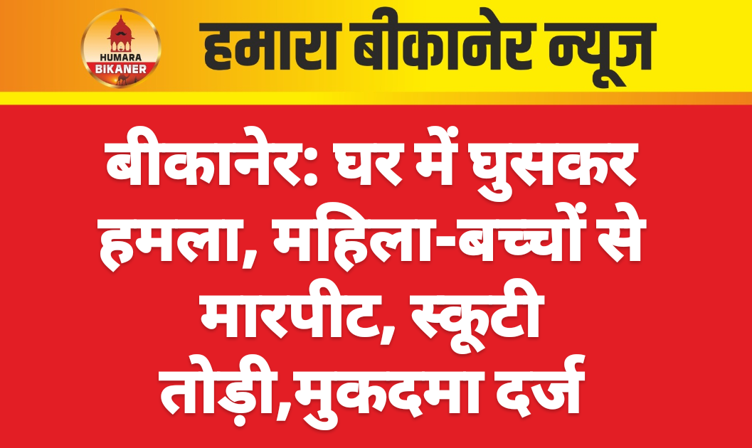 बीकानेर।घर पर हमला करने और मारपीट करने का मामला सामने आया है। इस सम्बंध में मुक्ताप्रसाद पुलिस थाने में बीकाजी फैक्ट्री के पास रहने वाली ममता ने संतोष, लैला, शनि व 8-10 अन्य के खिलाफ मुकदमा दर्ज करवाया है। घटना आजाद नगर में 8 सितंबर की है। इस सम्बंध में प्रार्थिया ने बताया कि आरोपियों ने उसके घर में घुसकर उसके व बच्चों के साथ थाप-मुक्कों से मारपीट की। प्रार्थिया ने बताया कि आरोपियों ने उसके घर पर हमला करते हुए स्कूटी में भी तोडफ़ोड़ की। पुलिस ने प्रार्थिया की रिपोर्ट के आधार पर मुकदमा दर्ज कर जांच शुरू कर दी है।