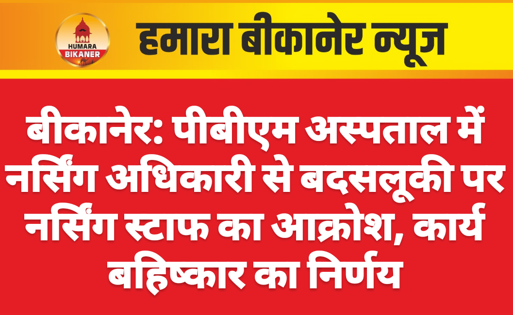 बीकानेर। पीबीएम अस्पताल में नर्सिंग अधिकारी के साथ बदसलूकी की घटना के बाद नर्सिंग कर्मचारियों में आक्रोश है। नर्सिंग कर्मचारियों का आरोप है कि एक सीनियर नर्सिंग ऑफिसर और महिला नर्सिंग अधीक्षक के साथ अभद्रता, बदसलूकी और मारपीट की गई। इस मामले में अब तक प्रशासन द्वारा कोई ठोस कार्यवाही नहीं की गई है। घटना के विरोध में नर्सिंग समुदाय ने 12 सितंबर से धरना शुरू कर दिया था। लेकिन मरीजों के हितों को ध्यान में रखते हुए नर्सिंग स्टाफ ने अनिश्चितकालीन हड़ताल का रास्ता न अपनाते हुए 15 सितंबर से 3 घंटे सुबह 9 बजे से 12 बजे तक कार्य बहिष्कार करने का निर्णय लिया है।