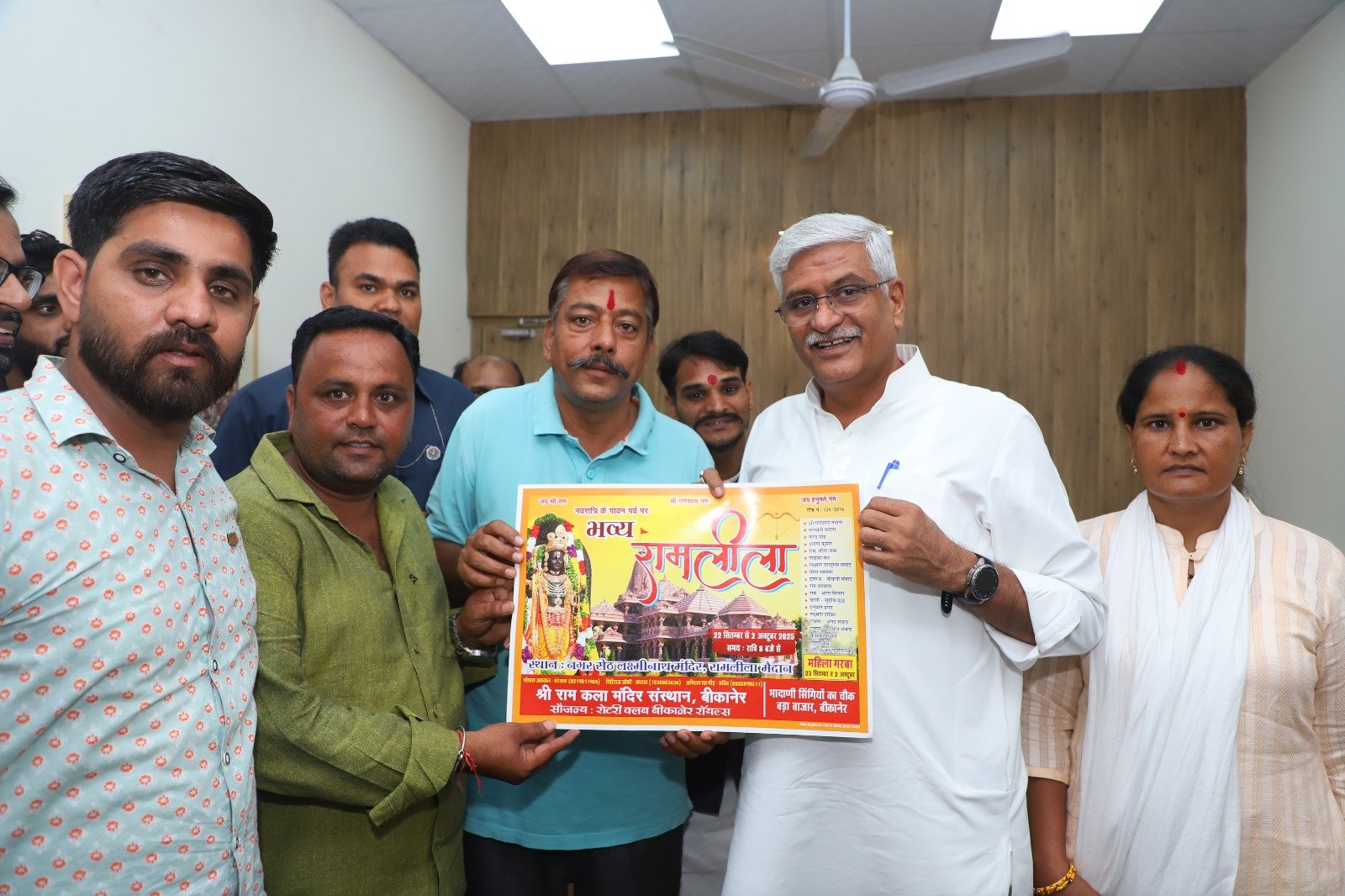 श्री राम कला मंदिर संस्थान व बीकानेर रोटरी रॉयल क्लब के तत्वावधान में भव्य रामलीला के आयोजन पर भारत सरकार के कैबिनेट कला संस्कृति के मंत्री गजेंद्र सिंह शेखावत के द्वारा ब्रोशर का उद्घाटन उनके दिल्ली निवास पर करने के साथ ही भव्य रामलीला दिनांक 22/8/ 2025 से 3/10/2025 बीकानेर पधारने का निमंत्रण दिया गया उद्घाटन के कार्यक्रम में पूर्व पार्षद किशोर आचार्य संस्थान के अध्यक्ष गिरीराज जोशी विजय कुमार छंगाणी घनश्याम उपाध्याय मदन गोपाल आचार्य आदि