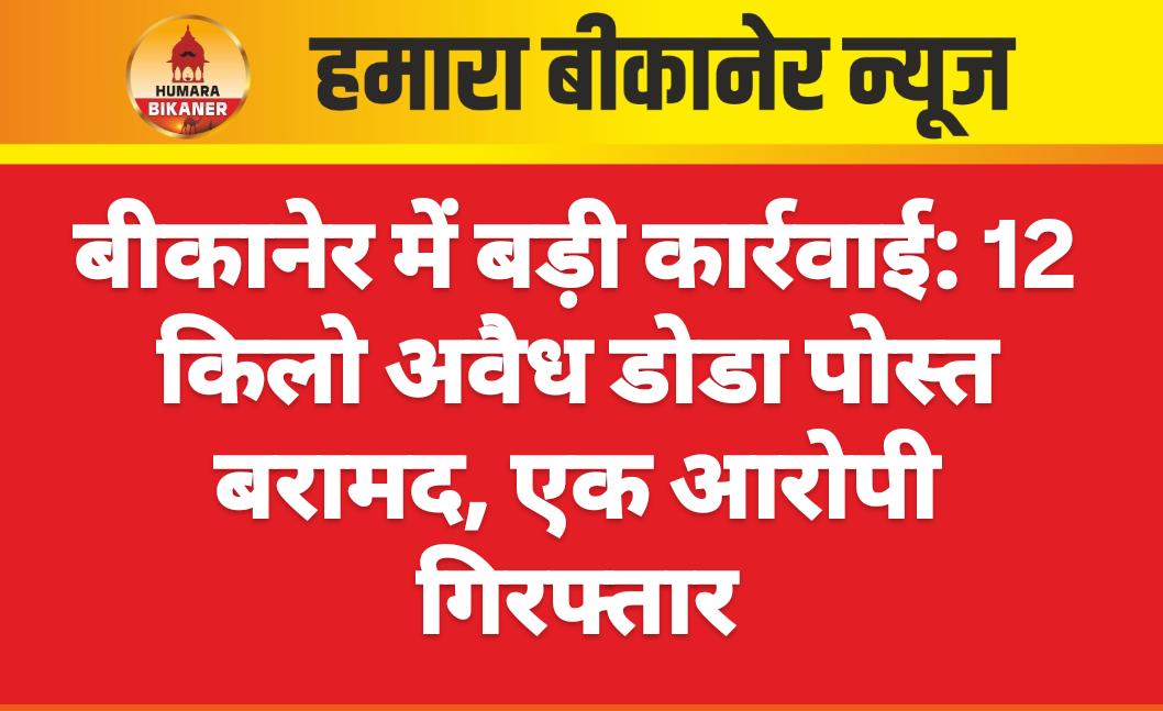 बीकानेर जिले में अवैध नशे के खिलाफ पुलिस ने बड़ी कार्रवाई की है। दंतौर थाना पुलिस ने 12 किलो 174 ग्राम अवैध डोडा पोस्त बरामद किया है। इस दौरान एक बाइक भी जब्त की गई है। पुलिस ने आरोपी भोम सिंह पुत्र नरपत सिंह निवासी चक 9 PSD श्रीगंगानगर को गिरफ्तार कर लिया।