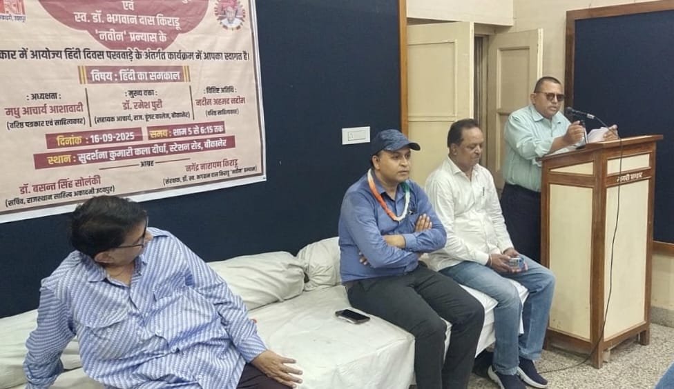 राजस्थान साहित्य अकादमी, उदयपुर व स्व भगवान दास किराड़ू ‘ नवीन ‘ प्रन्यास की तरफ से संयुक्त तत्वावधान में सुदर्शना कुमारी कला दीर्घा में आयोजित हिंदी दिवस पखवाड़े के तहत संगोष्ठी ‘ हिंदी का समकाल ‘ में व्याख्यान देते हुए आलोचक डॉ रमेश पुरी ने कहा कि भारत की हर भाषा राष्ट्रीय भाषा है, उन सब का सम्मान है। हिंदी हमारी सम्पर्क भाषा बने, उसके लिए सभी भारतीय भाषाओं का भी सम्मान जरुरी। उन्होंने हिंदी की विशालता को रेखांकित करते हुए कहा कि भाषाई उपनिवेशवाद से हमें नुकसान होगा। उससे हमें बचना है। डॉ पुरी ने अपने व्याख्यान में कहा कि हिन्दीवक भविष्य उज्ज्वल है। उसके लिए चिंतित होने की आवश्यकता नहीं है।
