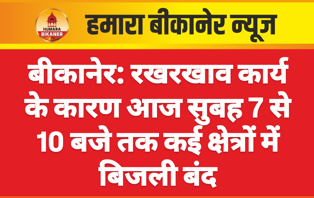 बीकानेर। जीएसएस फीडर रख-रखाव पेड़ों की छंटाई आदि के कारण सोमवार सुबह 7 बजे से 10: बजे तक ठाकर फर्नीचर के पास, डेयरी बूथ के पास, कमल कॉलोनी, लाल कोठी होटल के पास, ताजियों की चौकी फड़बाजार, कुचीलपुरा, अरबियों की मस्जिद के पास, रतन सागर कुआ के पास, गेरसरियों का मौहल्ला, मालियों की चौकी, नाथू की ताल के पास, हरिजन बस्ती बड़ी गुवाड़, फैज बाजार, कमल कॉलोनी आदि मे बिजली बंद रहेगी