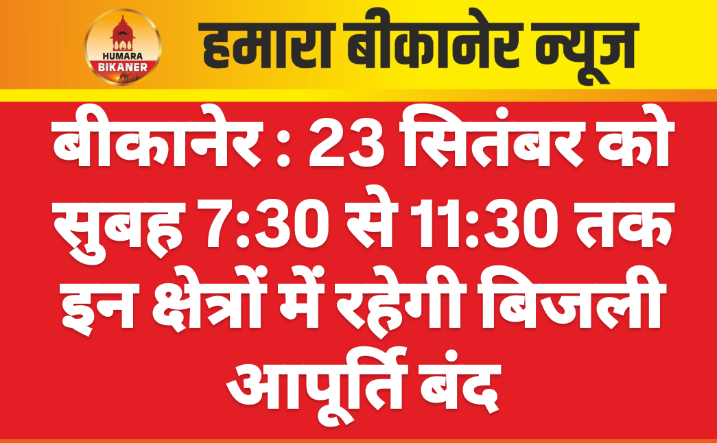 बिजली-कटौती राजस्थान राज्य विद्युत प्रसारण निगम लिमिटेड की ओर से मंगलवार 23 सितम्बर को प्रातः 07:30 बजे से 11:30 बजे तक