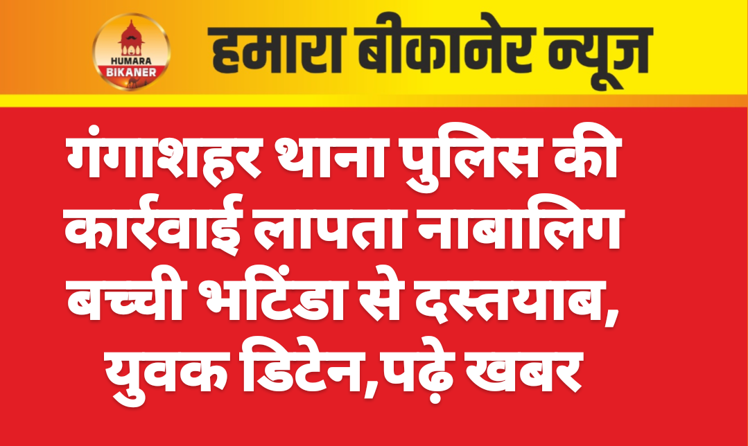 पिछले दिनों गंगाशहर थाना क्षेत्र से लापता हुई नाबालिग बच्ची को पुलिस ने दस्तयाब कर लिया है। दरअसल, एक युवक नाबालिग बच्ची को बहला-फुसलाकर अपने साथ ले गया था। युवक यहीं का रहने वाला है, जो नाबालिग को भंटिडा ले गया। पुलिस ने छानबीन करते हुए पता लगाया और पुलिस की एक टीम भटिंडा पहुंची, जहां नाबालिग बच्ची को दस्तयाब किया और युवक को डिटेन किया गया। गंगाशहर थाना इंचार्ज एसआई मोनिका ने बताया कि बच्ची के बयान होंगे, उसके बाद आगामी कार्रवाई की जाएगी।