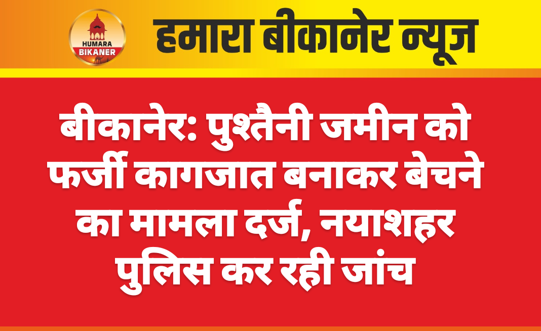 बीकानेर।पिता की जमीन को फर्जी तरीके से कागजात बनाकर बेचने का मामला सामने आय है। मामला नयाशहर पुलिस थन क्षेत्र से जुड़ा है। इस सम्बंध में बारह गुवाड़ क्षेत्र में रहने वाले यादव कमार व्यास ने चन्द्रकला, संतोश देवी, मुरली मनोहर, बद्रीदास, वीरेन्द्र रंगा, श्याम सुंदर, शिवशंकर, रमेश कुमार के खिलाफ मुकदमा दर्ज करवाया है। घटना वर्ष 2020 से 2024 के बीच की है। इस सम्बंध में परिवादी ने बताया कि आरोपियों ने एकराय होकर उसकी पिता की पुस्तैनी जमीन के फर्जी कागजात बनाकर धोखे से बेच दिया। पुलिस ने प्रार्थी की रिपोर्ट के आधार पर मुकदमा दर्ज कर जांच शुरू कर दी है।