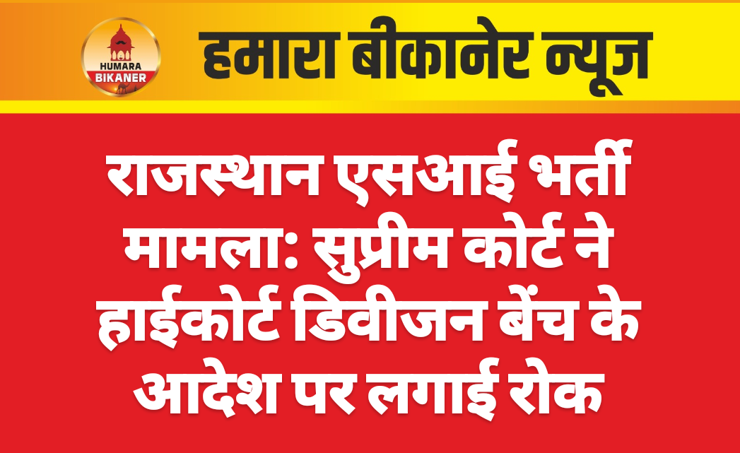 एसआई भर्ती-2021 मामले में सुप्रीम कोर्ट ने हाईकोर्ट की डिवीजन बेंच के 8 सितंबर के आदेश पर रोक लगा दी है। हाईकोर्ट ने अपने आदेश में चयनित एसआई को ट्रेनिंग में शामिल होने की अनुमति दी थी, लेकिन फील्ड पोस्टिंग पर रोक लगाई थी।अब सुप्रीम कोर्ट की रोक के बाद चयनित अभ्यर्थियों की ट्रेनिंग नहीं हो सकेगी। सुप्रीम कोर्ट के जस्टिस संजय करोल और मनमोहन की बेंच ने हाईकोर्ट की डिवीजन बेंच को इस अपील का फैसला 3 महीने के भीतर करने के भी निर्देश दिए हैं। तब तक एकलपीठ का 28 अगस्त के भर्ती रद्द करने का आदेश लागू रहेगा।बता दें कि राजस्थान सरकार की ओर से इस मामले में अतिरिक्त महाधिवक्ता शिवमंगल शर्मा ने दलील दी कि उम्मीदवारों को ट्रेनिंग की अनुमति दी जाए, लेकिन कोर्ट ने उनकी दलीलों को खारिज कर दिया।